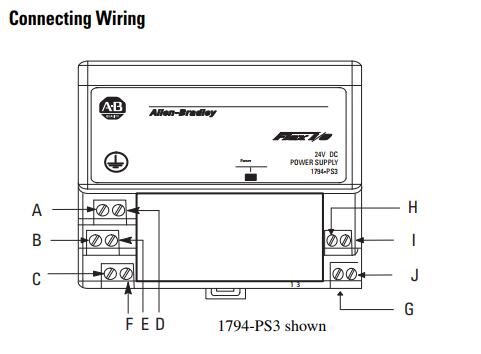 एलन-ब्रैडली द्वारा 1794-PS1 फ्लेक्स I / O पावर सप्लाई मॉड्यूल एक एसी पावर सप्लाई मॉड्यूल है जो इससे जुड़े किसी भी 3 एडेप्टर मॉड्यूल को 24V DC पावर सप्लाई करता है। इसमें 47-63 हर्ट्ज पर 120V AC और 230V AC नाममात्र वोल्टेज की आपूर्ति है और इसकी सीमा 85-265V AC है। 1794-PS1 में 0.7A और 0.2A के नाममात्र इनपुट वर्तमान के साथ एक एकल एसी चक्र के लिए 30A का एक चालू प्रवाह है जो कि इनपुट पावर 47Hz और 85V AC पर एक आधे चक्र के लिए बाहर जाने पर भी निर्बाध रहता है। 1794-PS1 में 22.8-25.2V डीसी के आउटपुट वोल्टेज रेंज और 1 ए के अधिकतम आउटपुट वर्तमान के साथ + 24 वी डीसी का नाममात्र आउटपुट है। आउटपुट पर न्यूनतम भार 100mA है और इसमें 2ms के लिए 23A का आउटपुट वृद्धि है जो सभी 3 एडेप्टर को चलाने के लिए पूरी तरह से पर्याप्त है।